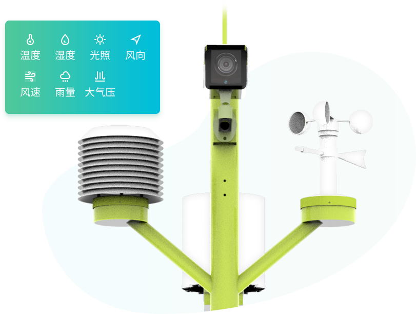 一體化設計,外觀精美,高度集成,采集空氣溫度、空氣濕度、光照度、氣壓、降雨量、風速、風向七要素,實時視頻監(jiān)控田間動態(tài)。